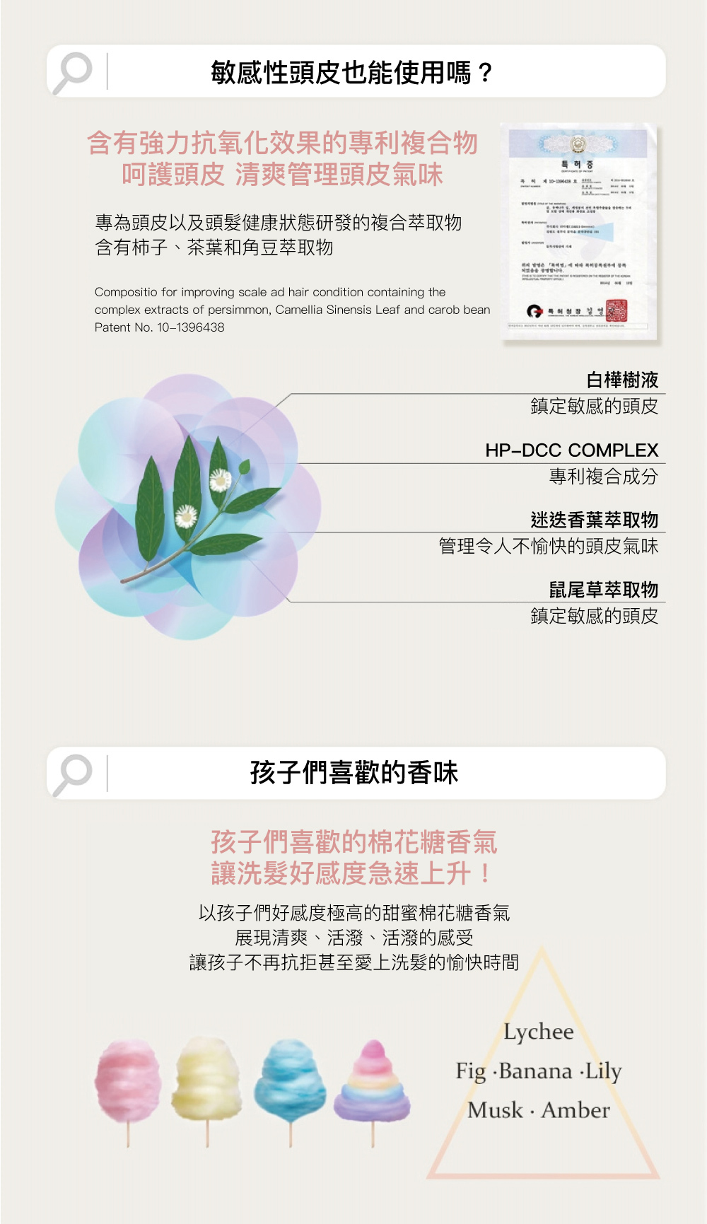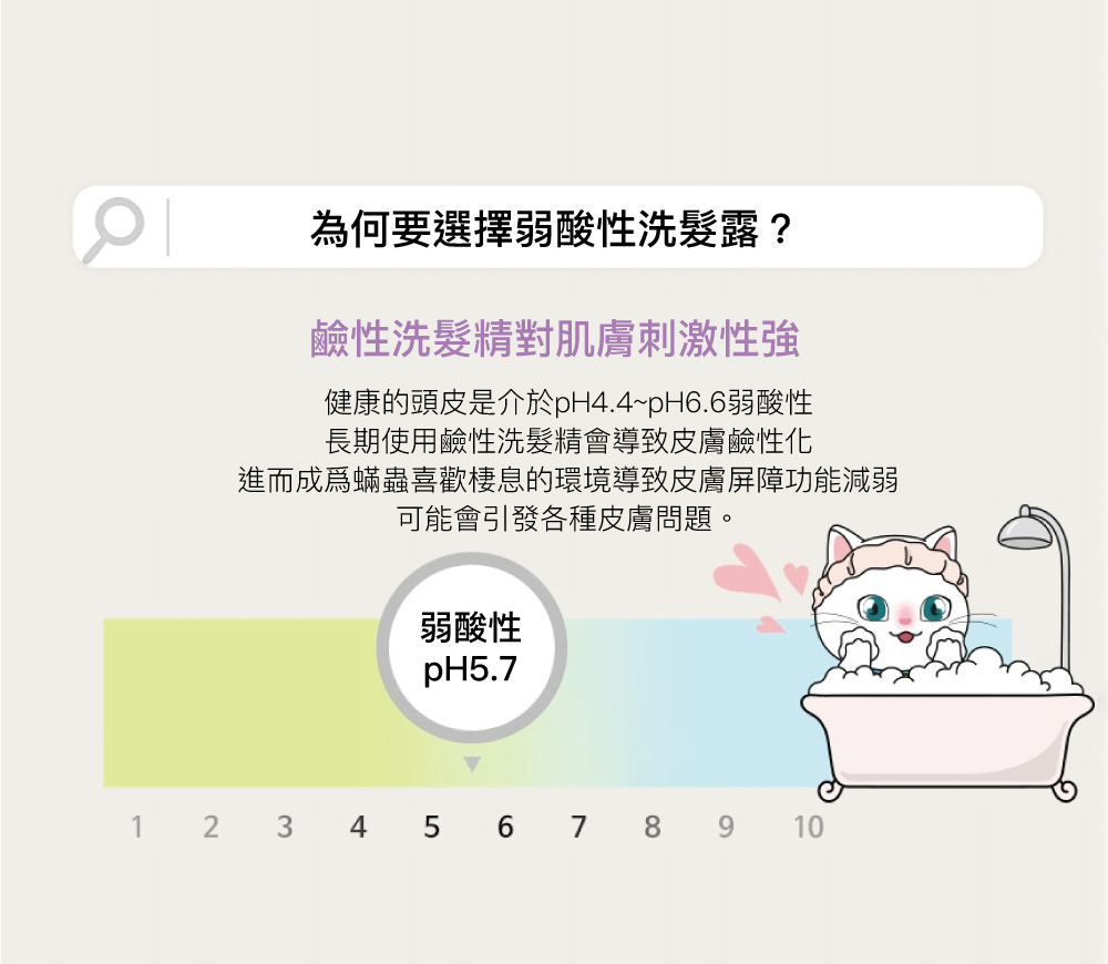 • pH值5.7弱酸性呵護嬌嫩頭皮