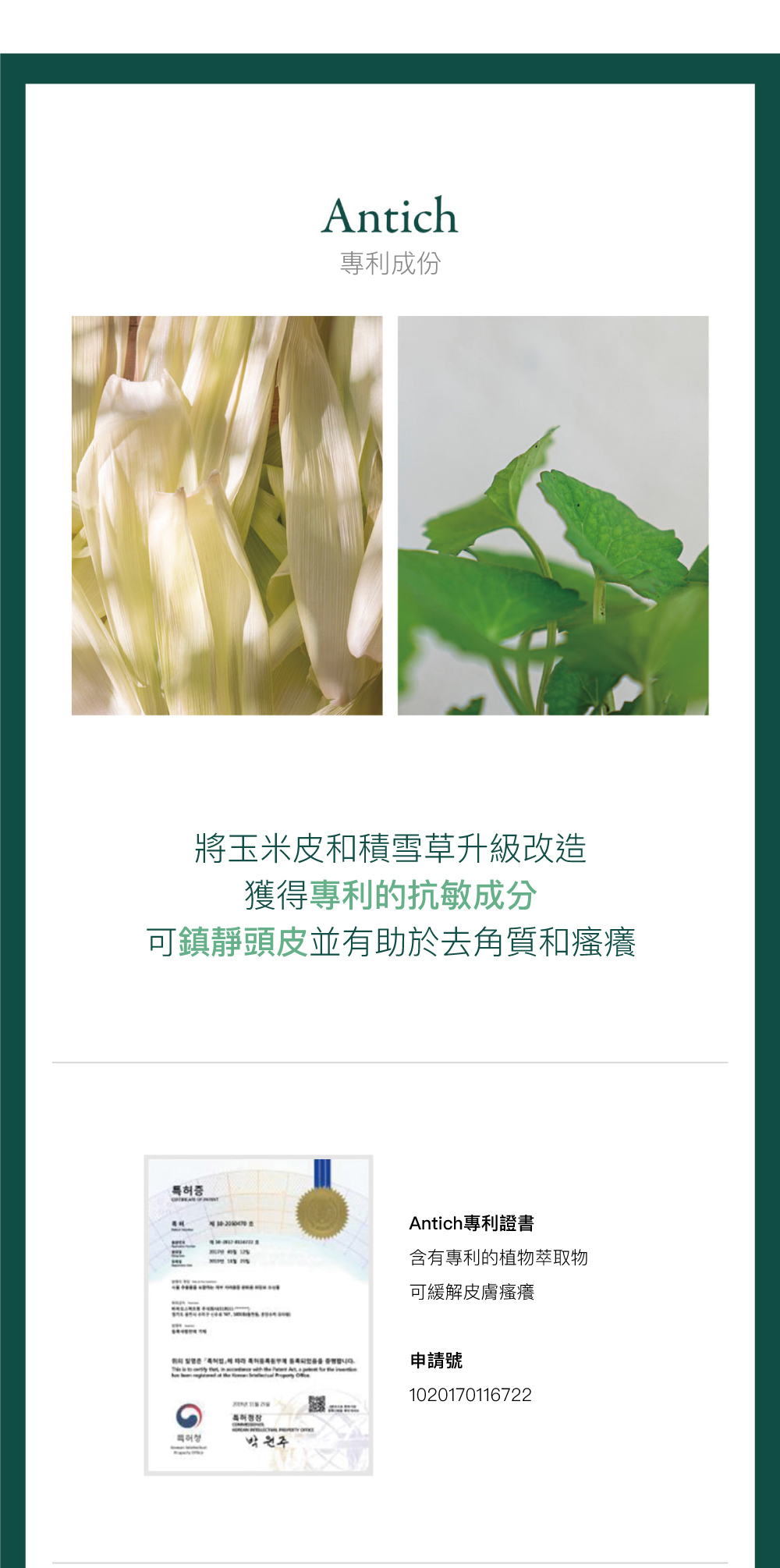 • 含有Antich專利成份,有效減緩過敏性頭皮