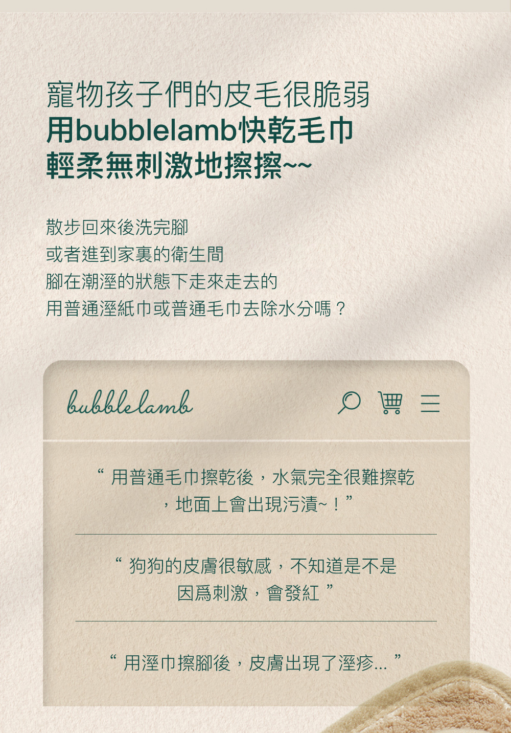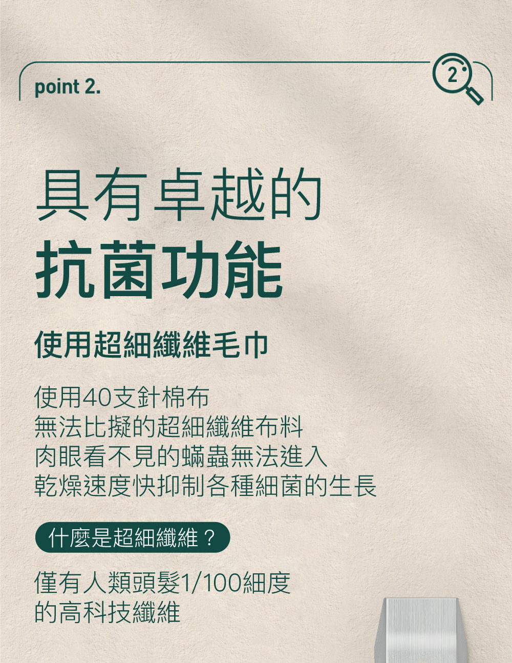 • 快速乾燥力抑制細菌增殖