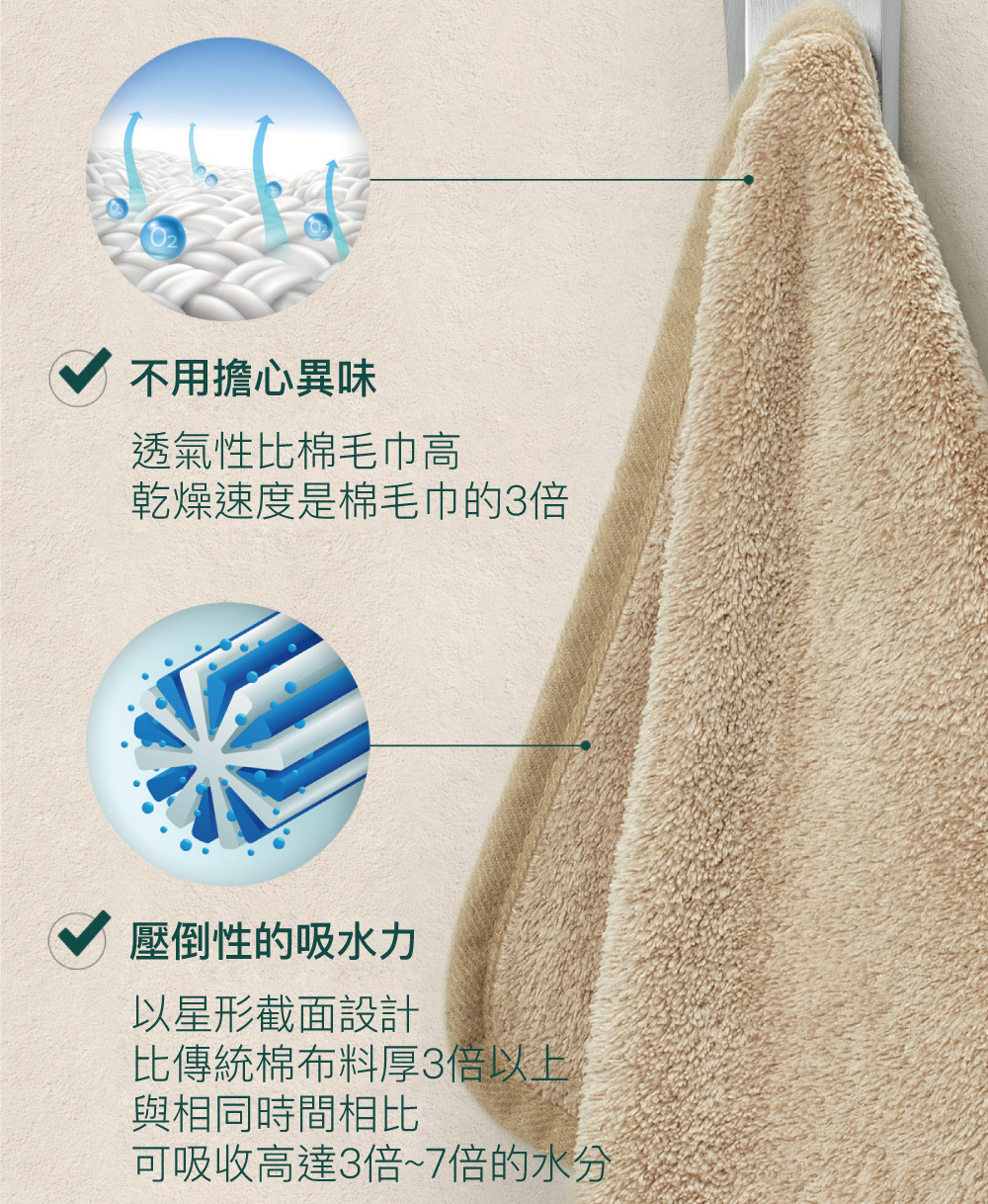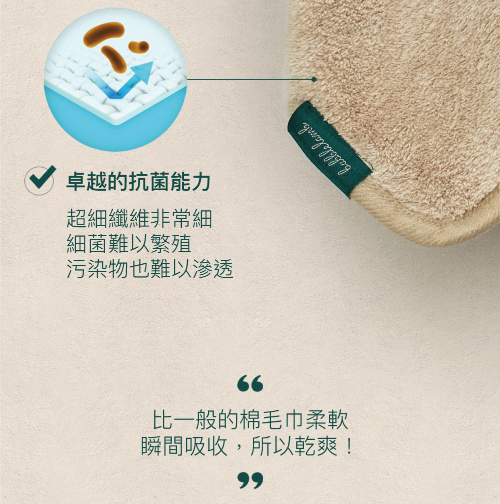 • 比普通毛巾多3~7倍吸收力