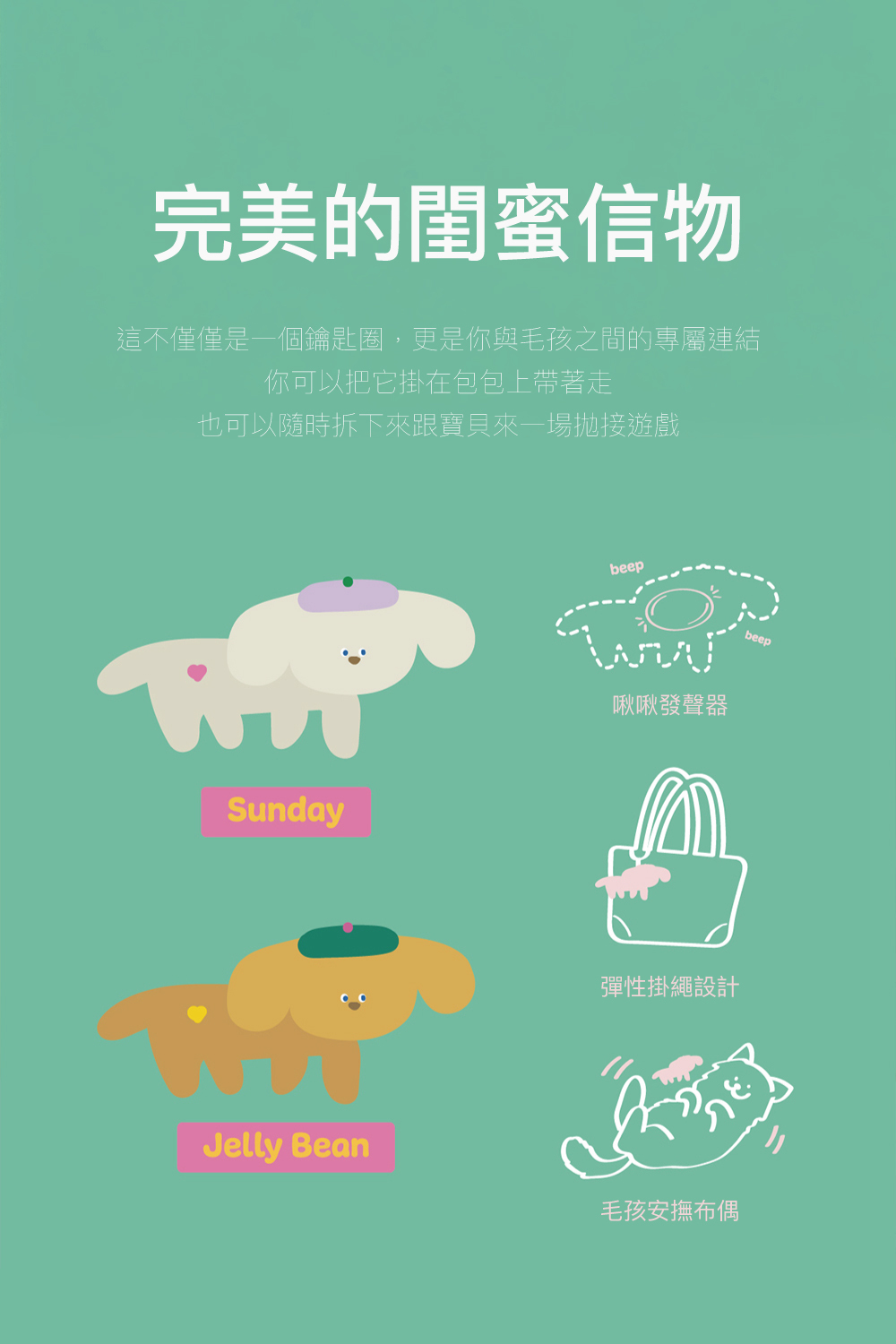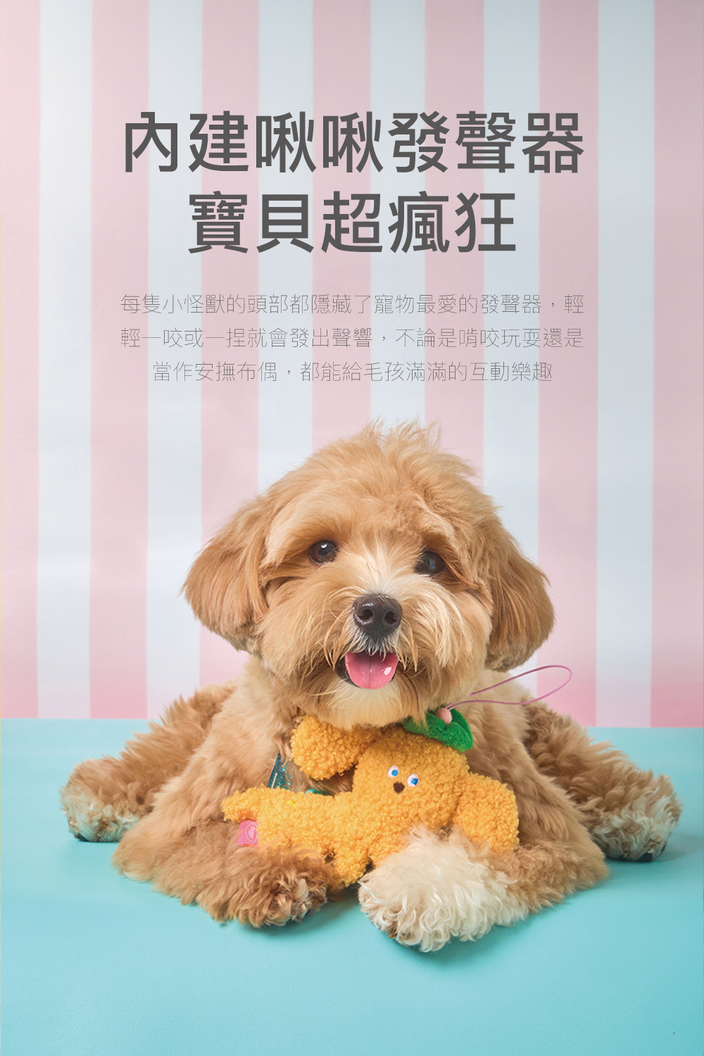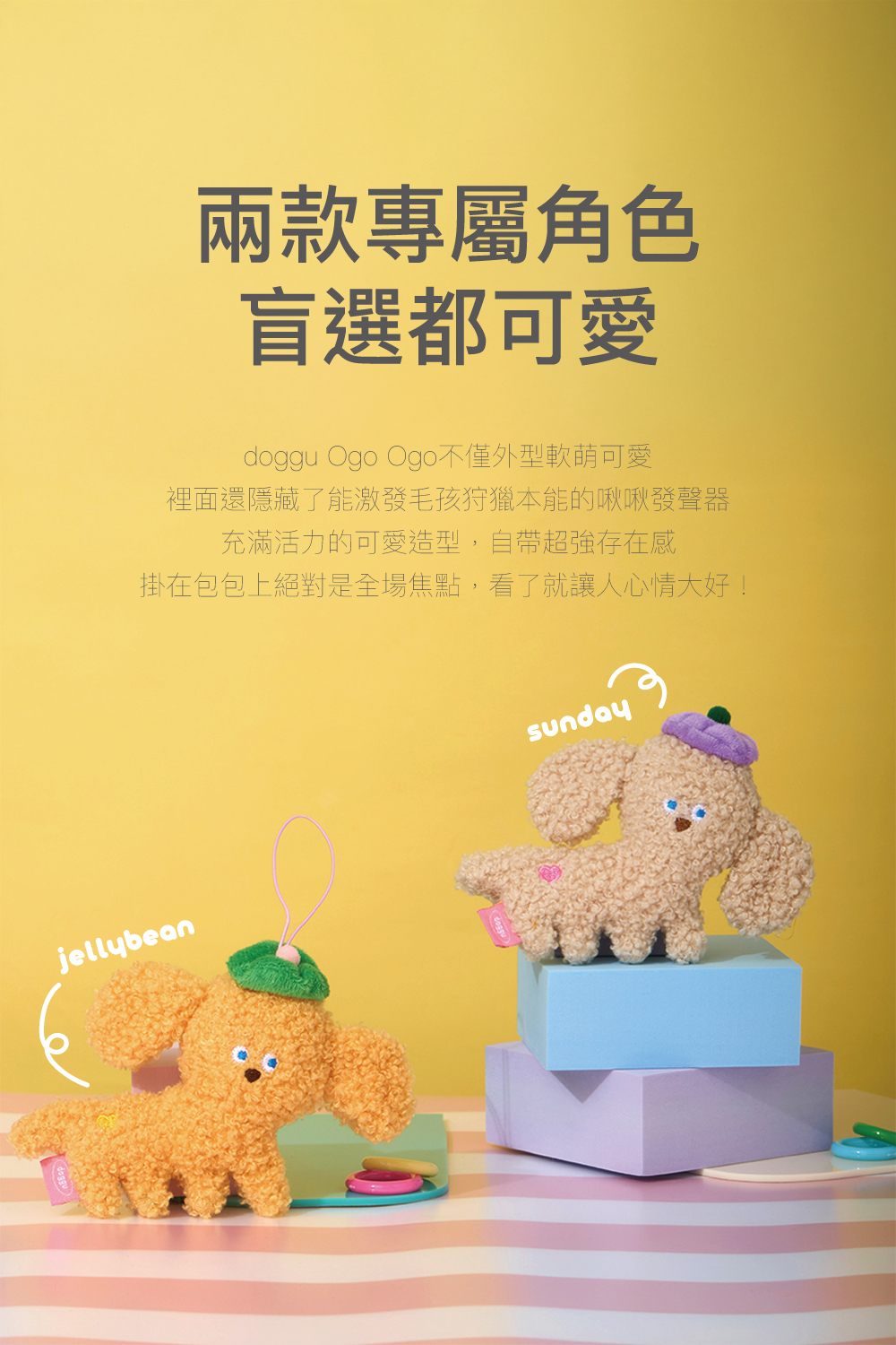 doggu Ogo Ogo 毛絨玩具掛飾不僅外型軟萌搞怪,裡面還隱藏了能激發毛孩狩獵本能的「啾啾發聲器」!頂部貼心設計了彈性掛繩,可以輕鬆把它當作包包掛飾。出門是你最吸睛的潮流配件,回家取下就是寶貝最愛的陪睡小夥伴。一物兩用,把寶貝的世界縮小帶在身邊,可愛度直接破表!