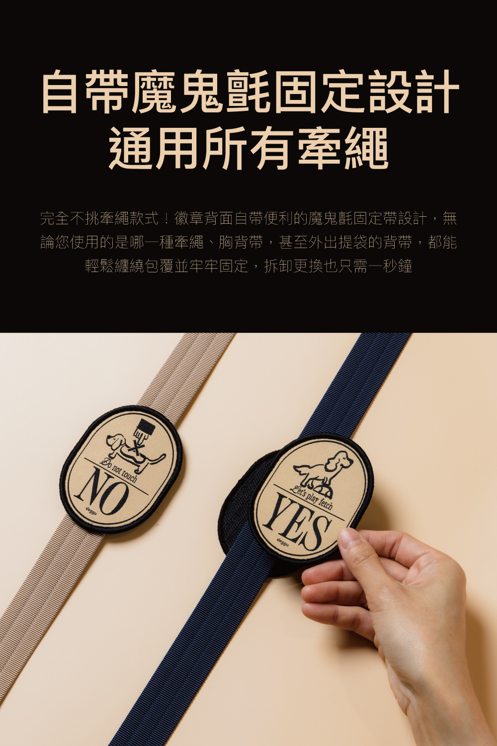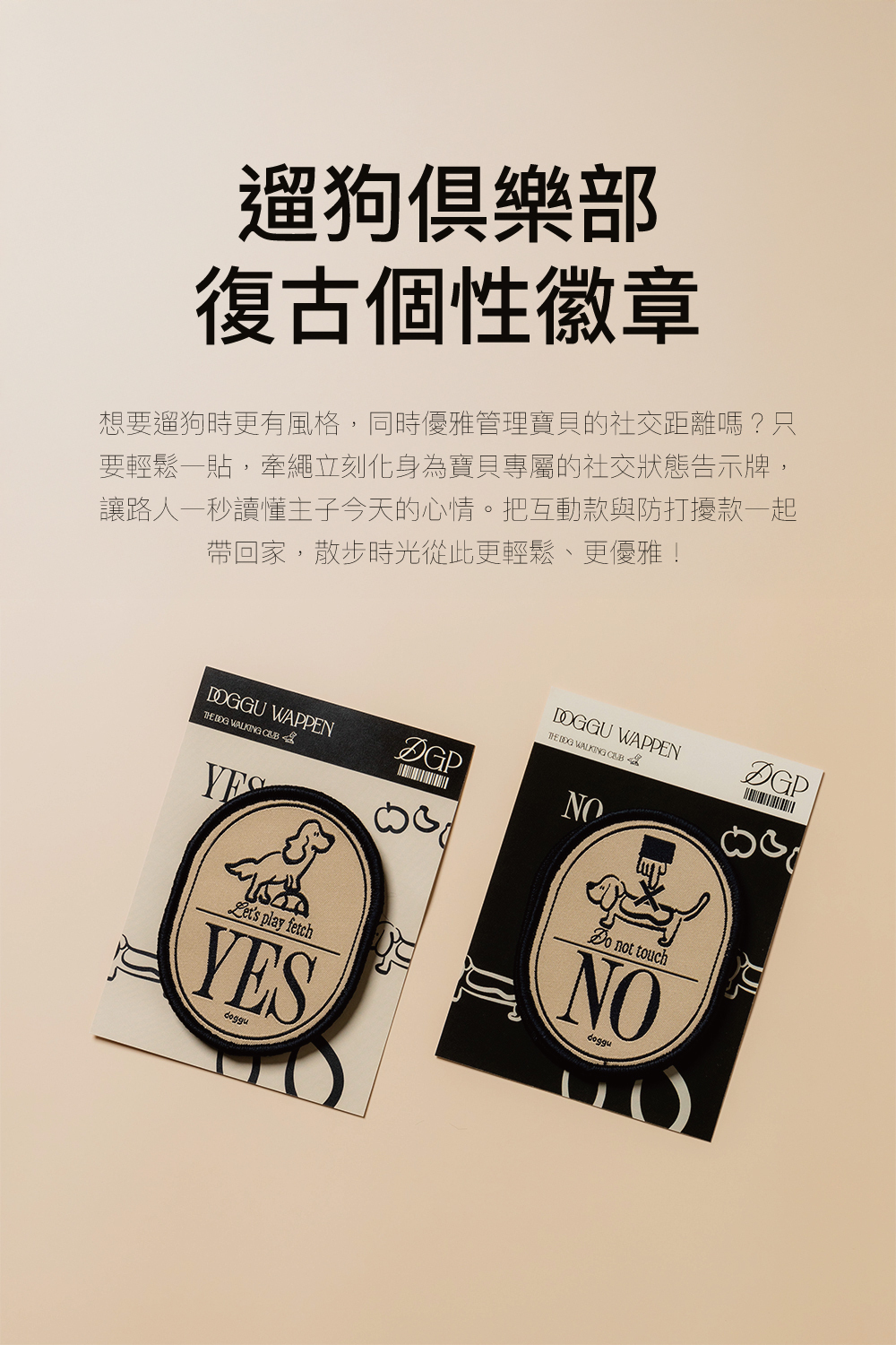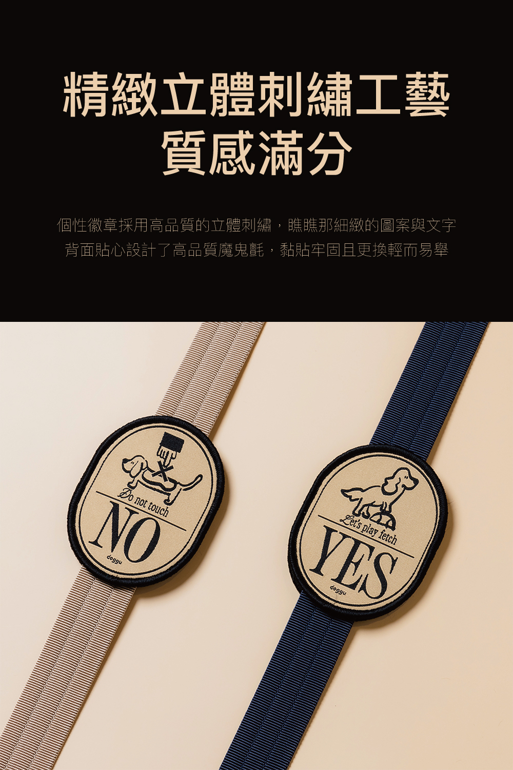 doggu The Dog Walking Club復古美式系列個性徽章 ❤️ 這系列採用經典的卡其色織布搭配黑色立體刺繡,質感滿分。最棒的是它不挑牽繩款式,只要輕鬆一扣,牽繩立刻化身為寶貝專屬的社交狀態告示牌,讓路人一秒讀懂主子今天的心情。把互動款與防打擾款一起帶回家,散步時光從此更輕鬆、更優雅!