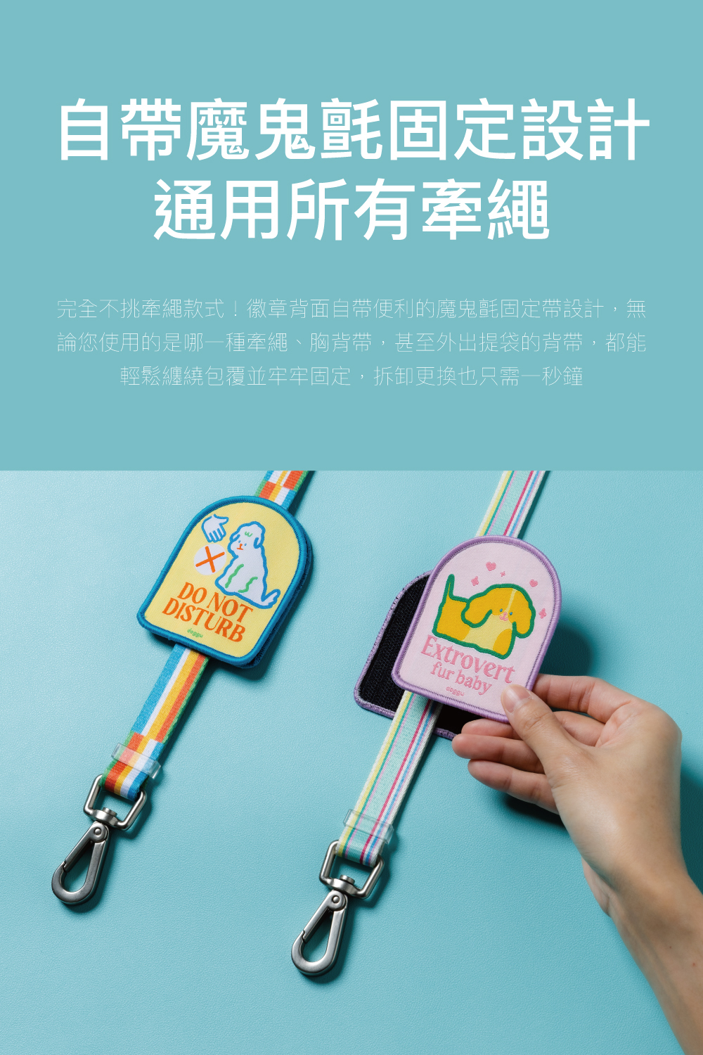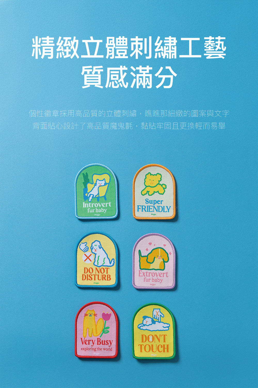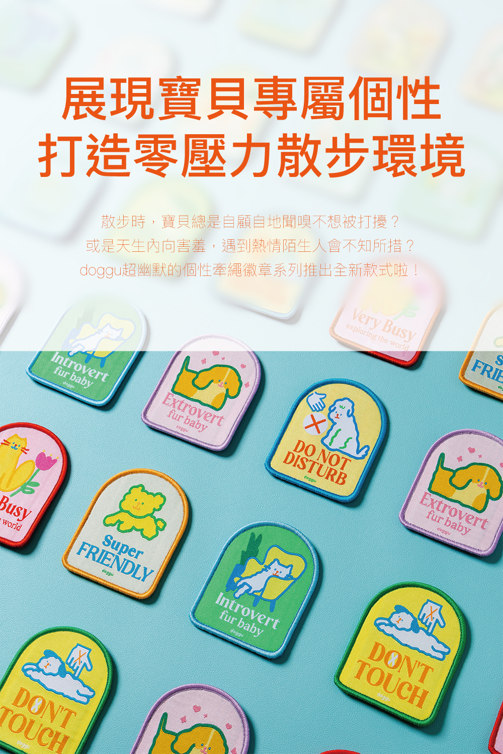 doggu 超幽默的個性刺繡徽章系列 4 款全員到齊!這次不僅有毛孩通用的款式,更特別為傲嬌的貓主子設計了專屬標語。透過療癒的色彩與直白的美式幽默,一秒向路人宣告寶貝當下的社交 MBTI,優雅化解人類開口解釋的尷尬。自帶通用型魔鬼氈設計,不挑牽繩與外出包,貼上去立刻成為全場最有態度的焦點!