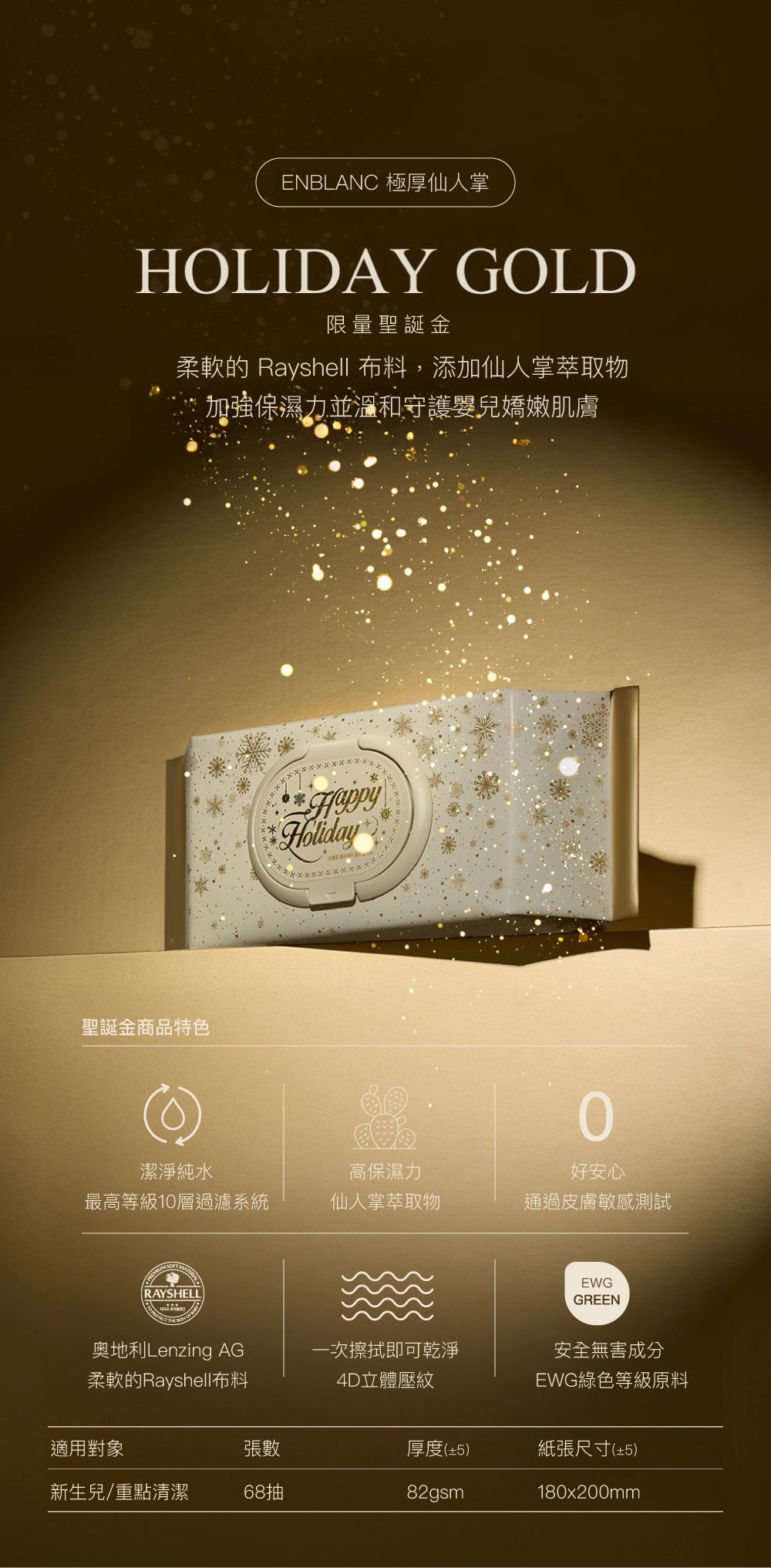 ENBLANC 聖誕金限量款|極厚仙人掌|有蓋大包純水濕紙巾|68抽