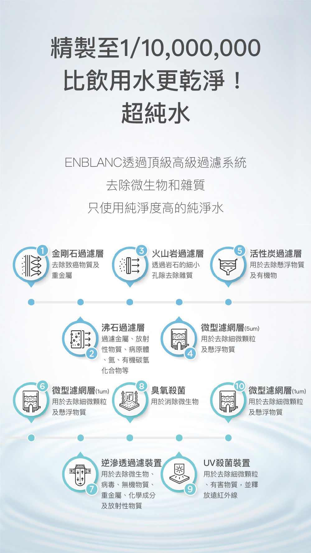 • 採用最高等級 10 層過濾純淨水,品質安全有保障
