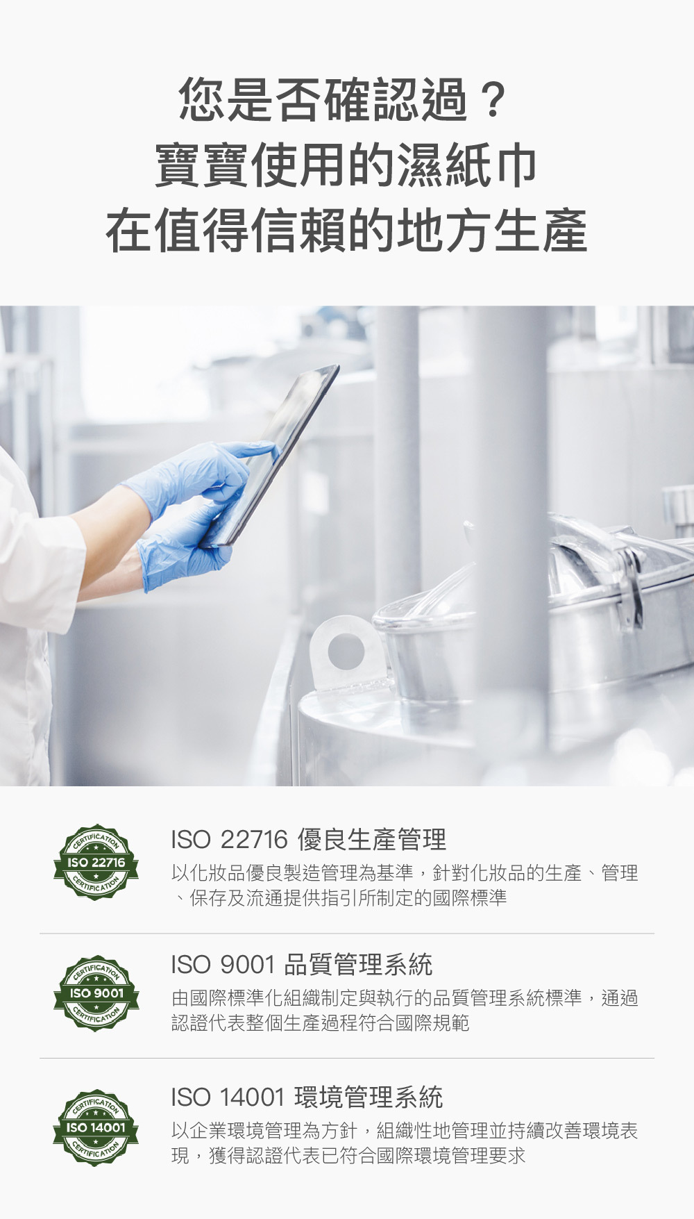 • 無酒精、無螢光劑、無甲醛釋放體,通過多項國際認證