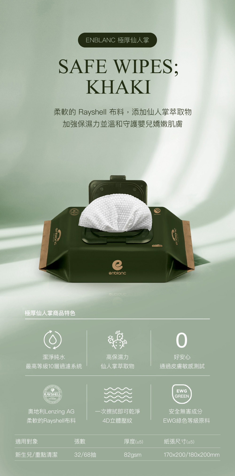 ENBLANC 銀離子抗菌|極厚仙人掌|有蓋輕裝純水濕紙巾|32抽30包