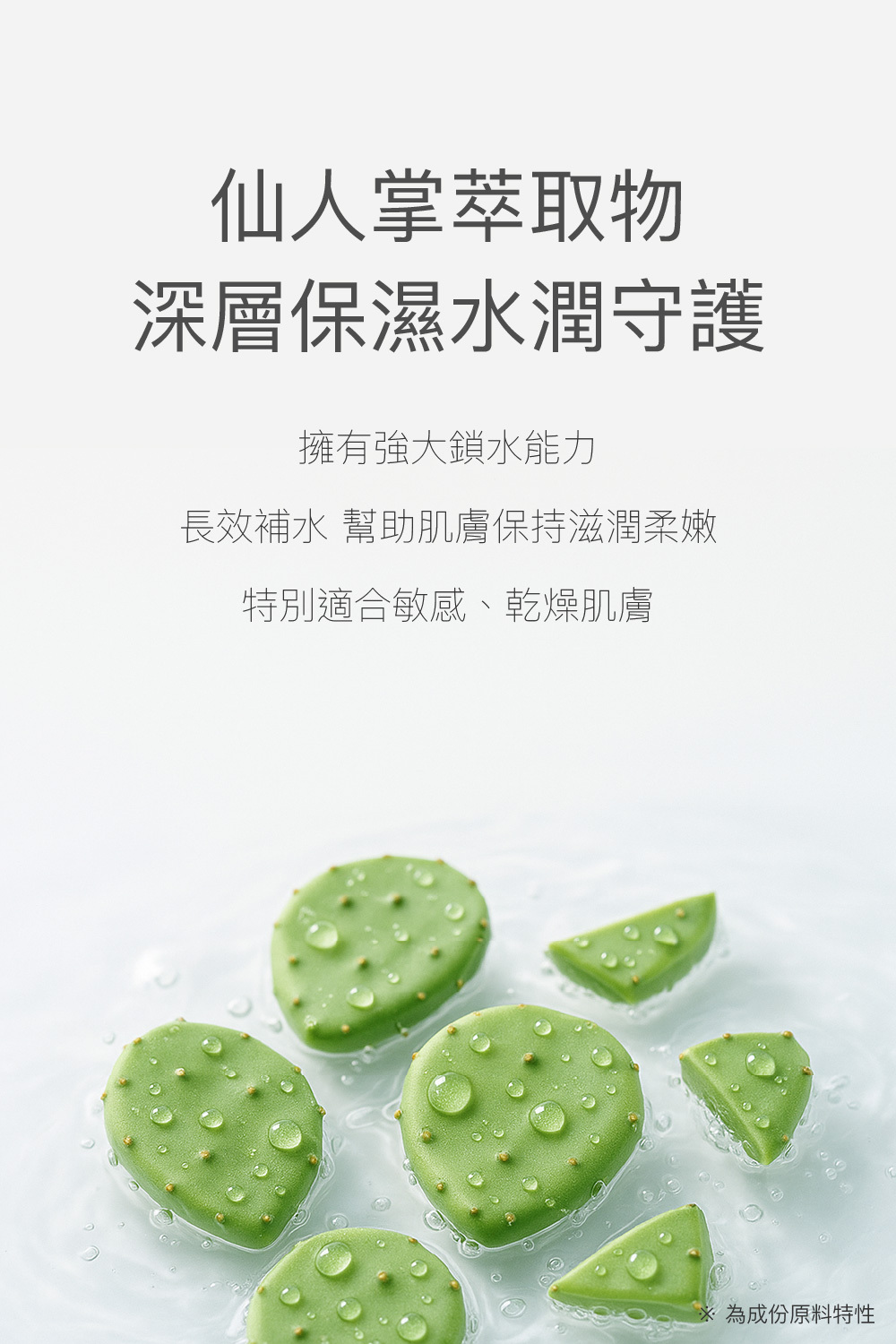 • 添加仙人掌萃取物,富含多醣體,給予寶寶深層保濕