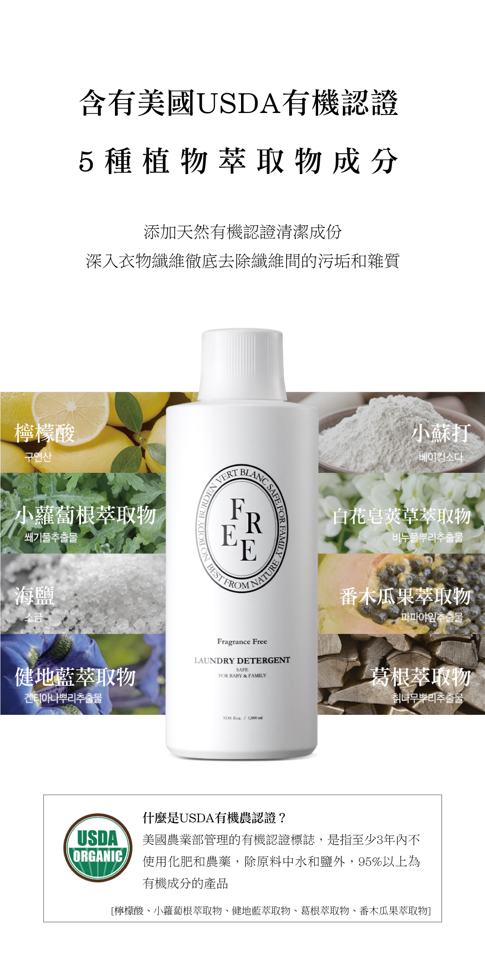 • 含有獲得美國USDA有機農認證的5種萃取物