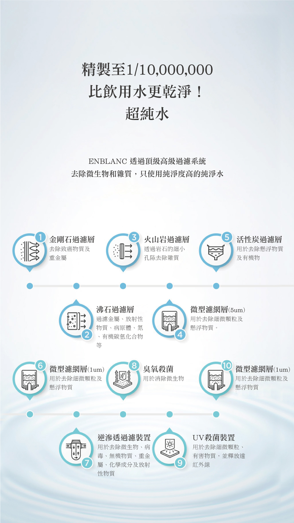 • 採用最高等級 10 層過濾純淨水,品質安全有保障
