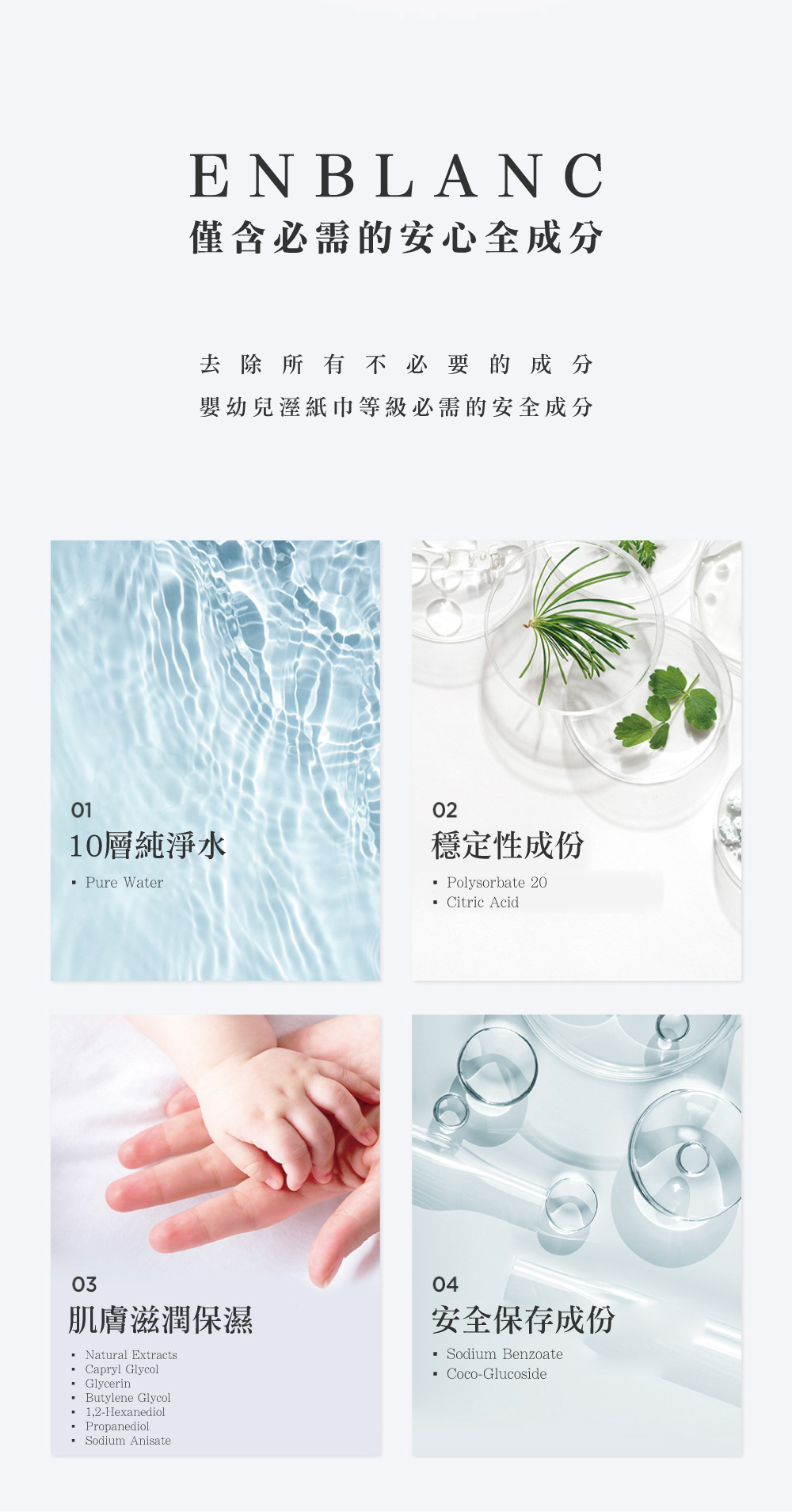 • 高含水量設計,濕潤度充足,清潔同時呵護肌膚