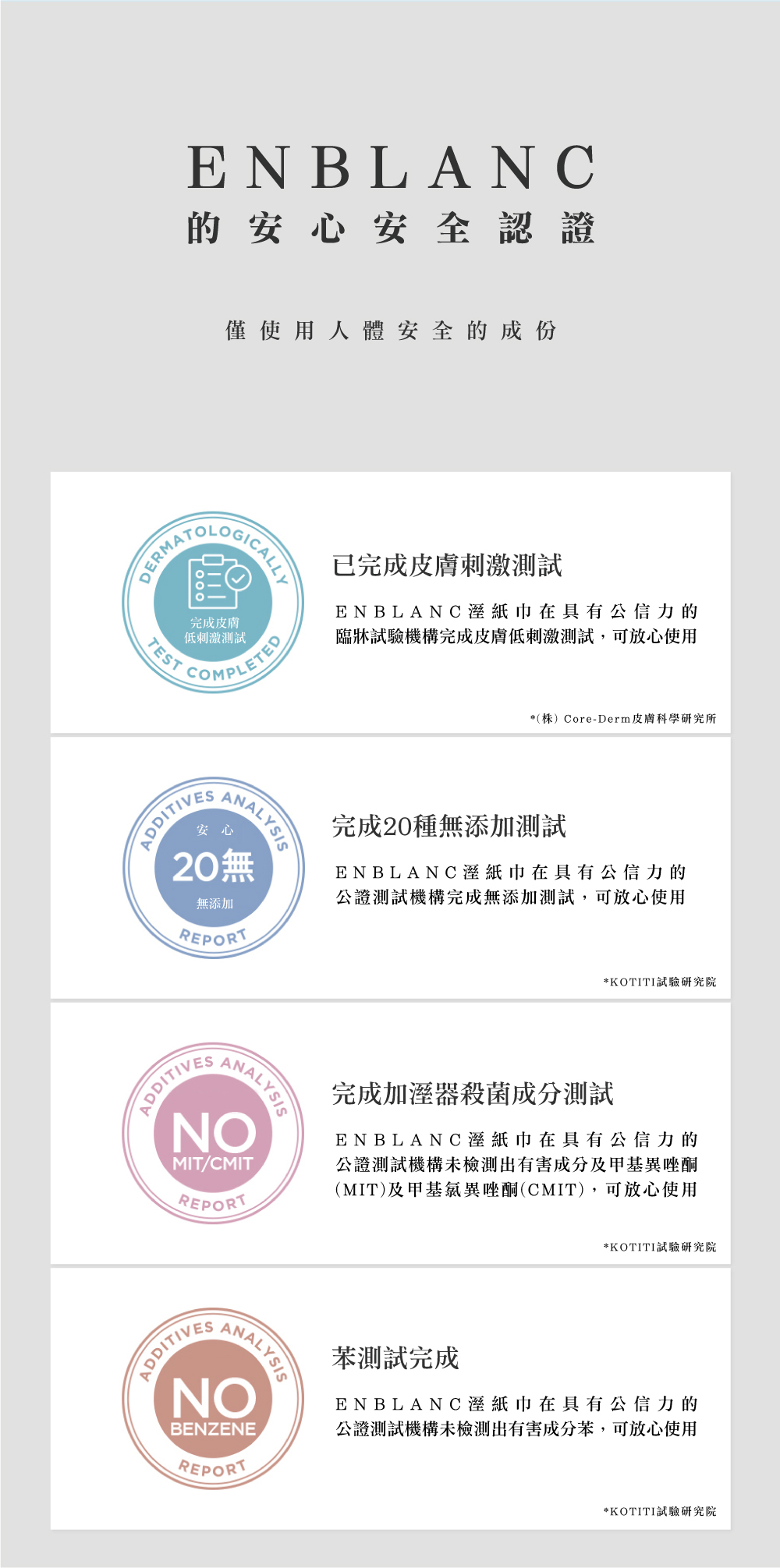 • 無酒精、無螢光劑、無甲醛釋放體,通過多項國際認證