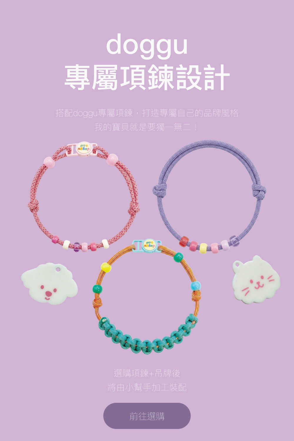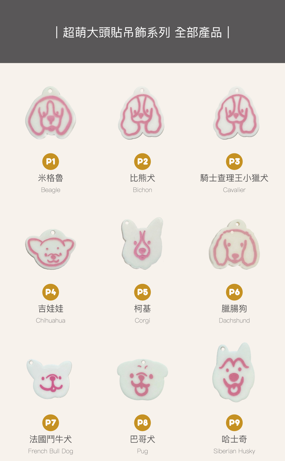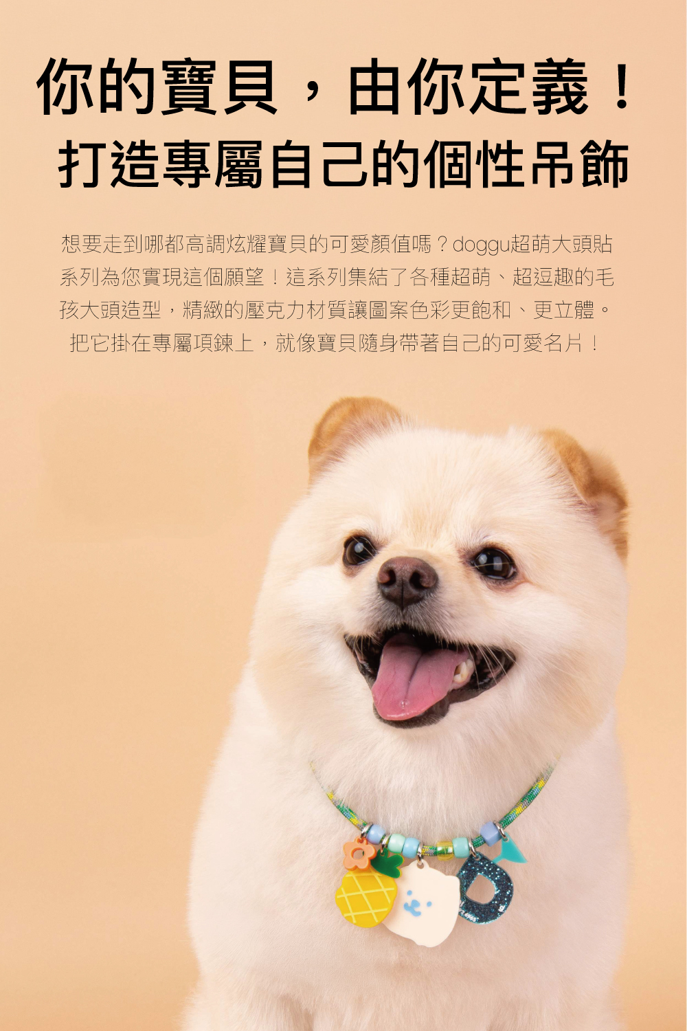 想要走到哪都高調炫耀寶貝的可愛顏值嗎?doggu超萌大頭貼系列為您實現這個願望!這系列集結了各種超萌、超逗趣的毛孩大頭造型,精緻的壓克力材質讓圖案色彩更飽和、更立體。把它掛在專屬項鍊上,就像寶貝隨身帶著自己的可愛名片!