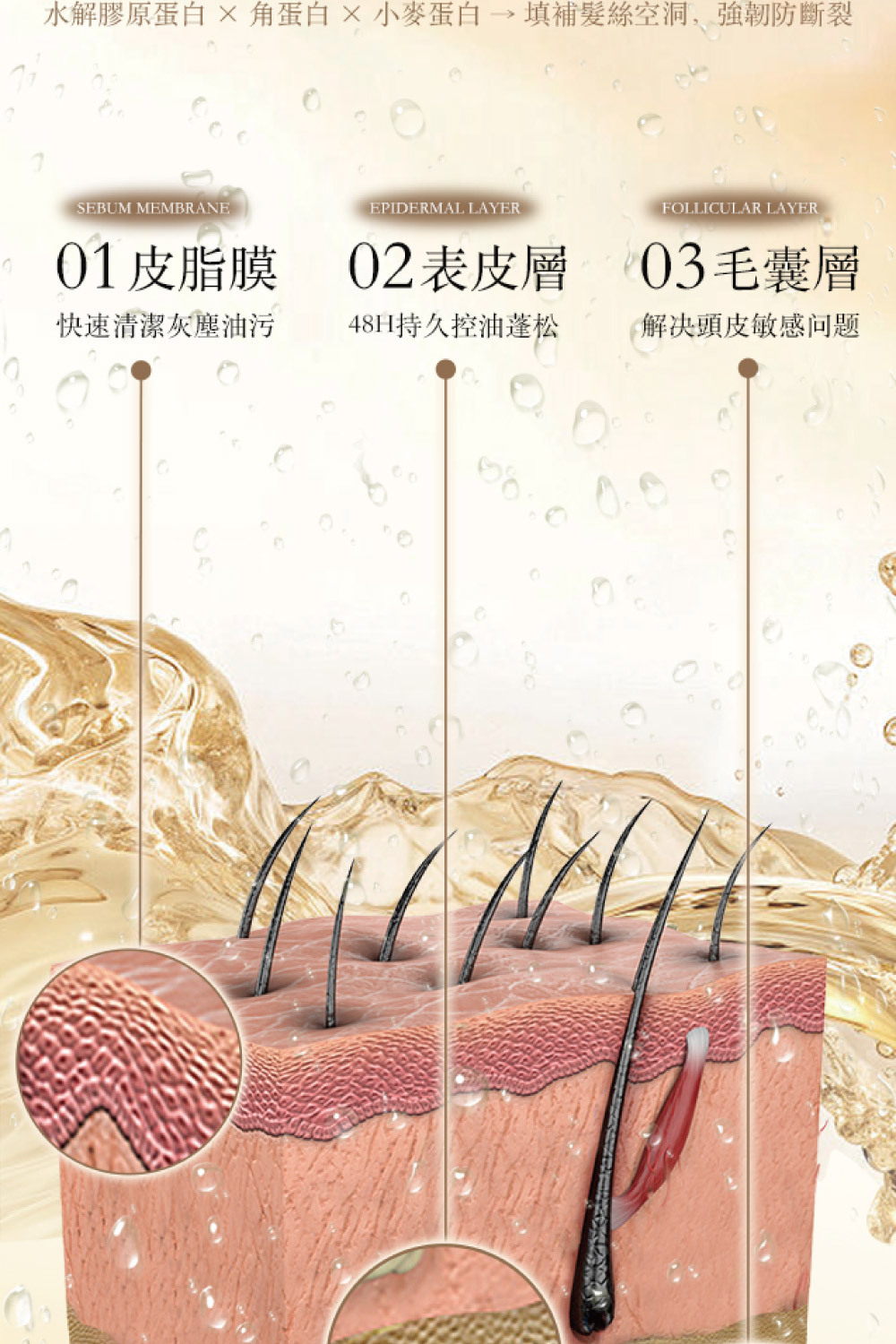 • 添加 水解膠原蛋白、角蛋白及小麥蛋白,幫助強韌髮絲,防止毛躁與斷裂