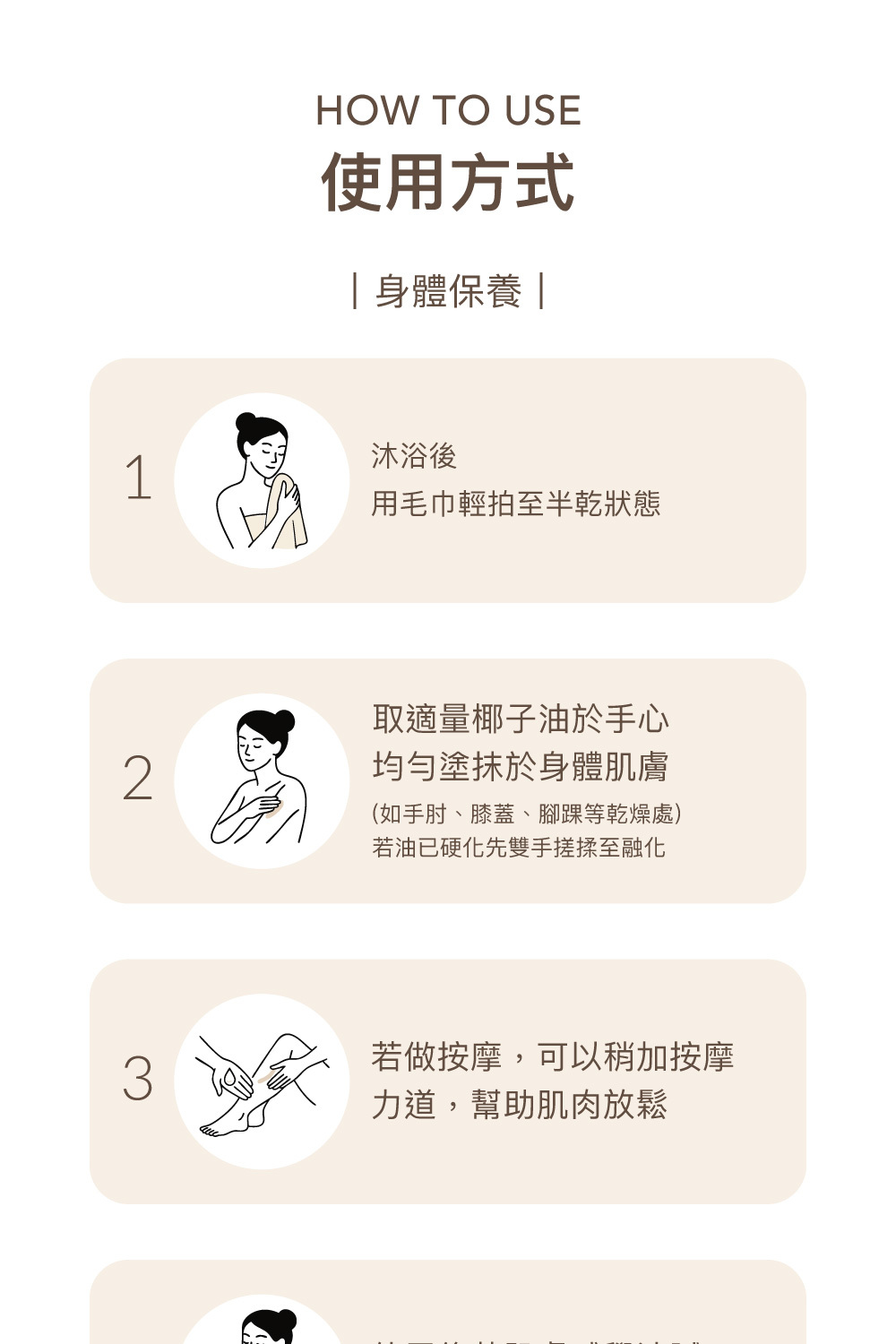 • 多用途 • 身體、頭髮、按摩一次搞定