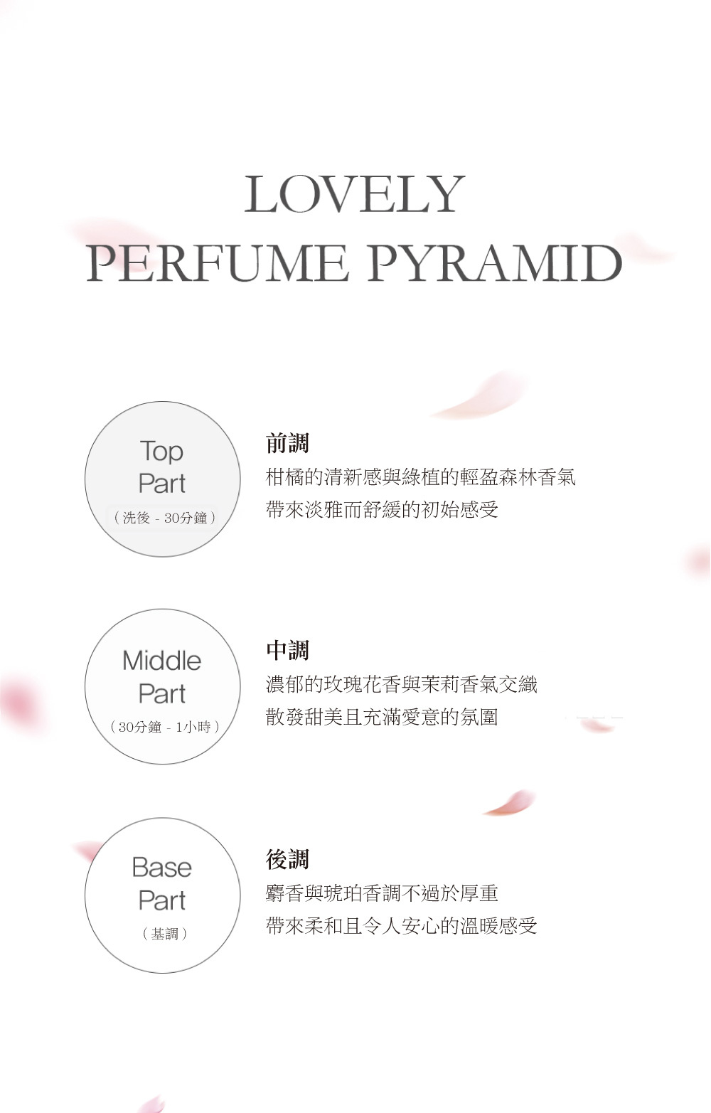 ‧ 玫瑰×柑橘交織的浪漫花香|甜美玫瑰搭配柑橘,清新優雅、持久留香