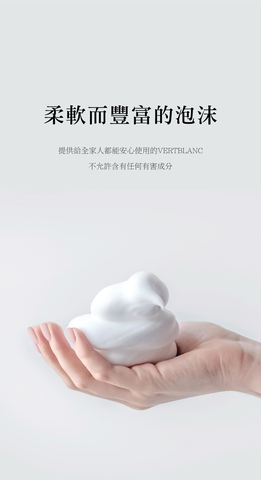• 柔軟豐富的泡沫在清潔後仍保持肌膚濕潤度