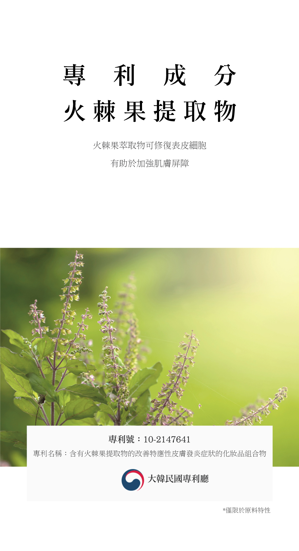 • 含有天然火棘果專利成份,可改善過敏性皮膚炎