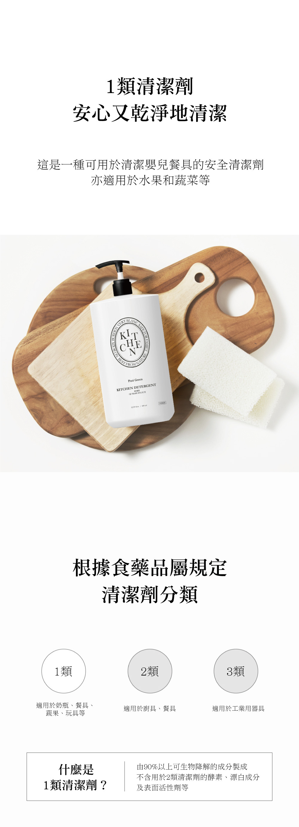 • 1類廚房清潔劑,由90%以上可生物降解的成分製成