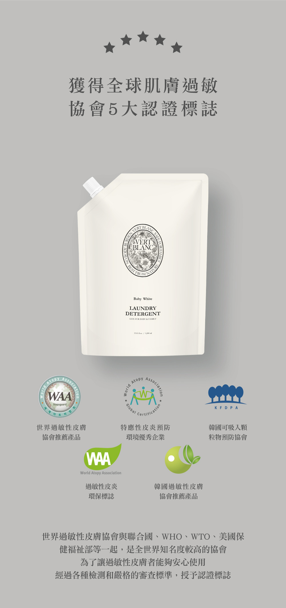 • 榮獲國際全球肌膚過敏協會5大認證標誌