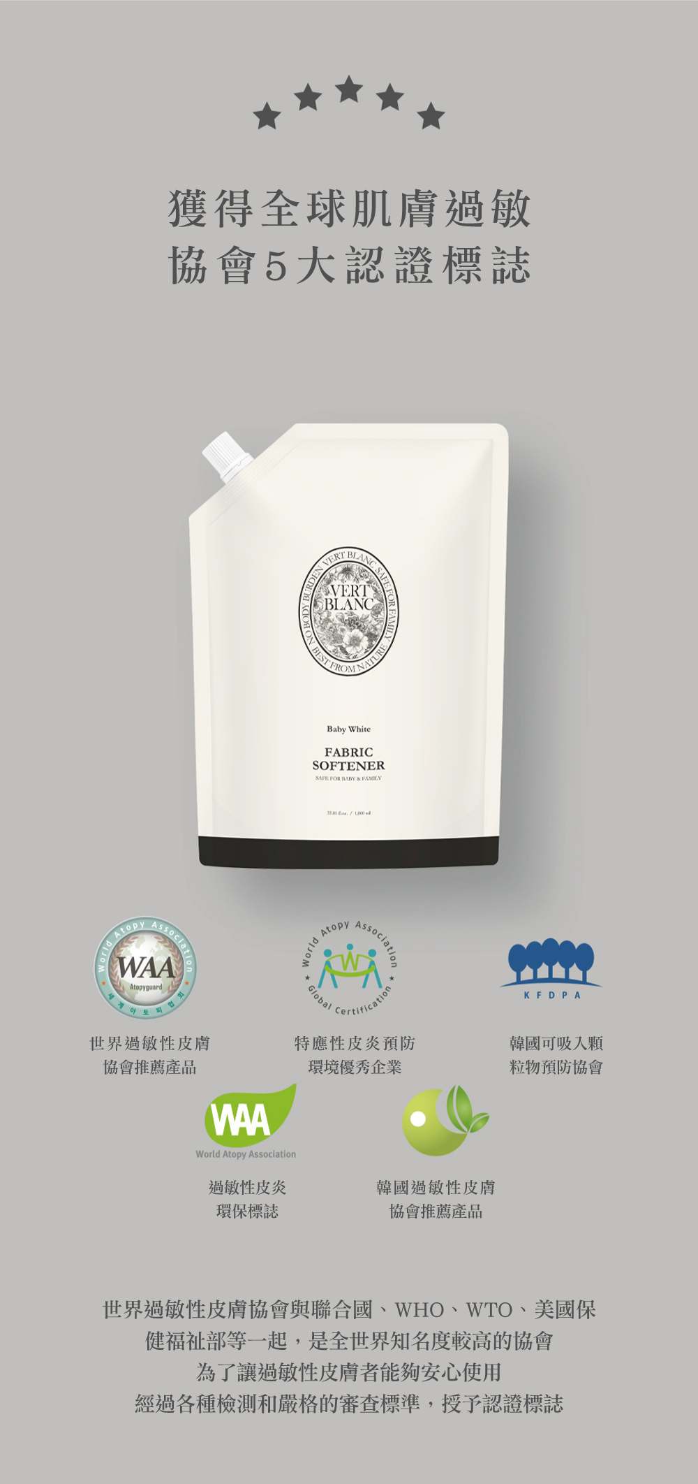 • 榮獲國際全球肌膚過敏協會5大認證標誌
