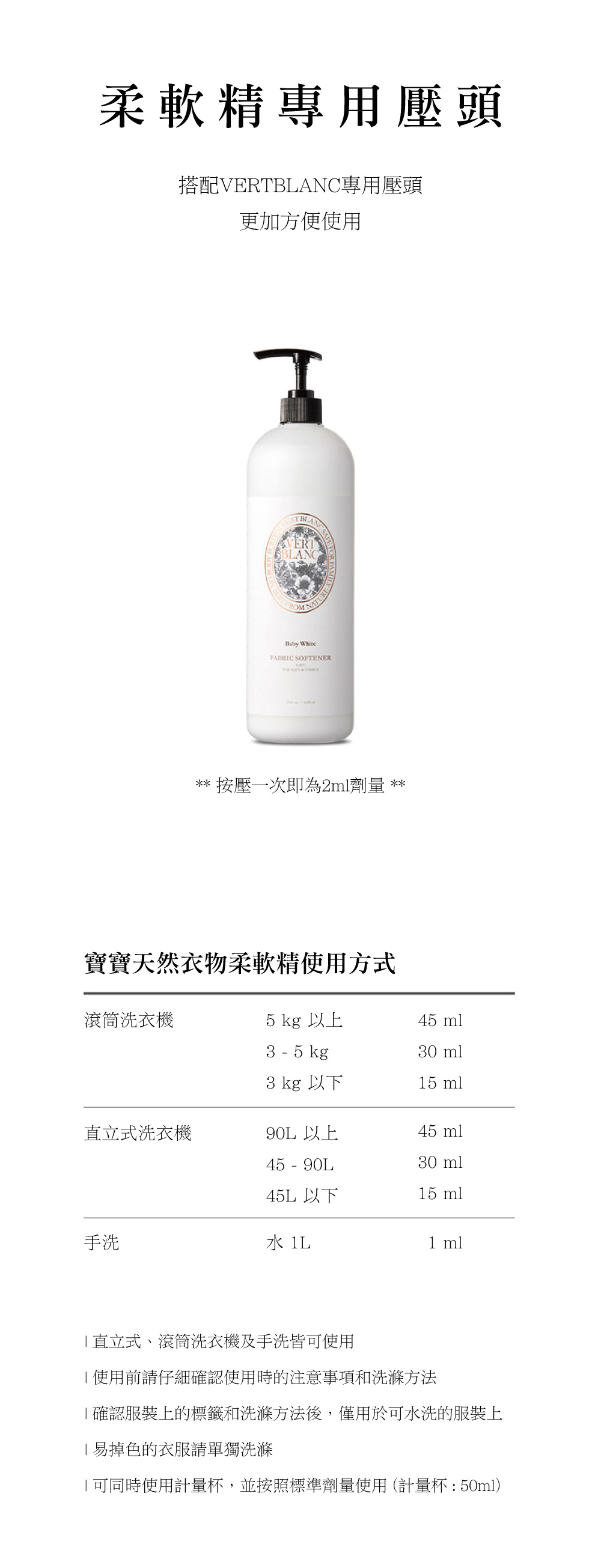 • 採用天然安全的清潔成份,不僅可以清潔、保護衣物,含有可以清潔嬰兒衣物的溫和配方