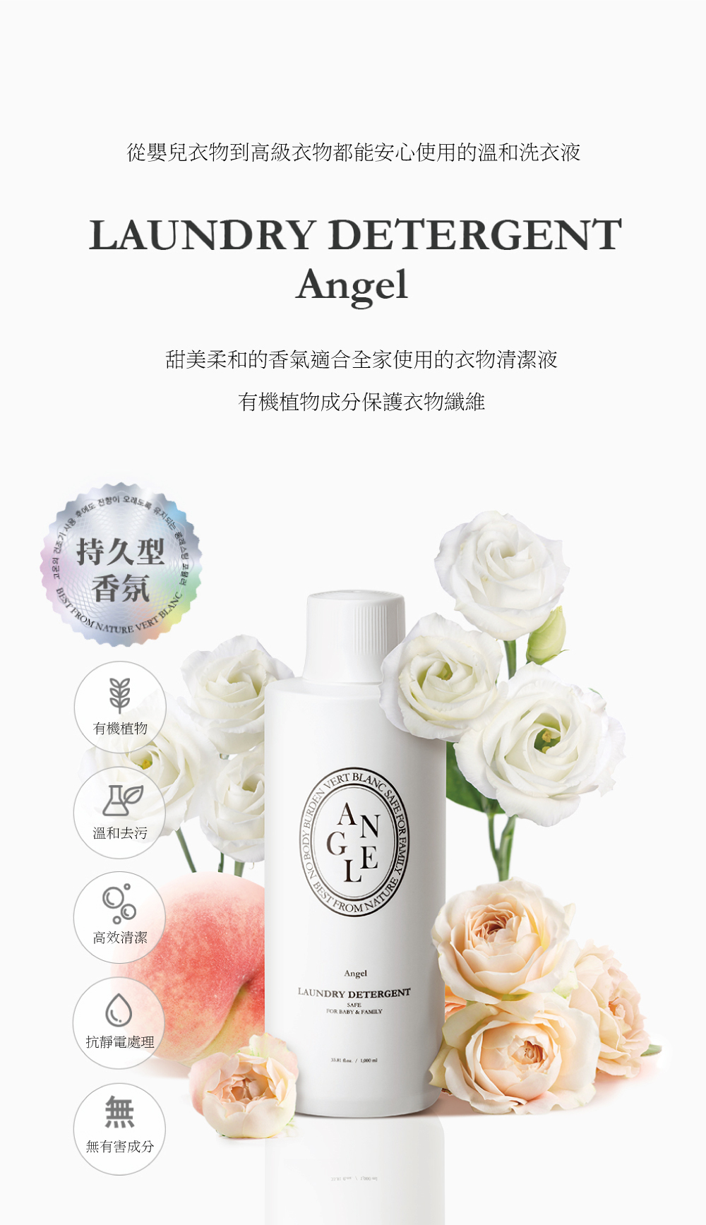 • 採用天然安全的清潔成份,可以清潔、保護衣物,含有可以清潔嬰兒衣物的溫和配方