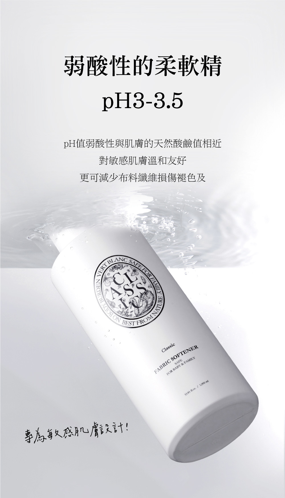 • 採用天然安全的柔軟成份,可以溫柔的保護衣物,含有可以清洗嬰兒衣物的溫和配方
