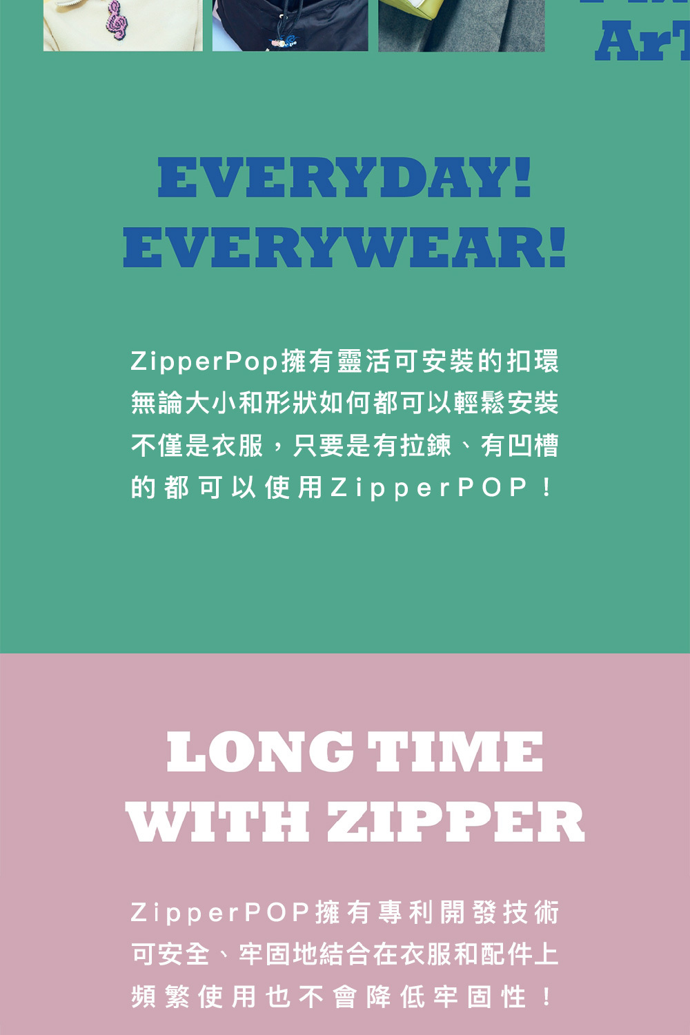 • 專利技術,在拉鍊上可輕鬆、簡便地一鍵式拆卸